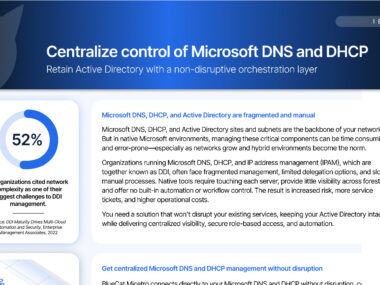 Microsoft DNS, DHCP, and Active Directory sites and subnets are the backbone of your network. But in native Microsoft environments, managing these critical components can be time consuming and error-prone—especially as networks grow and hybrid environments become the norm.